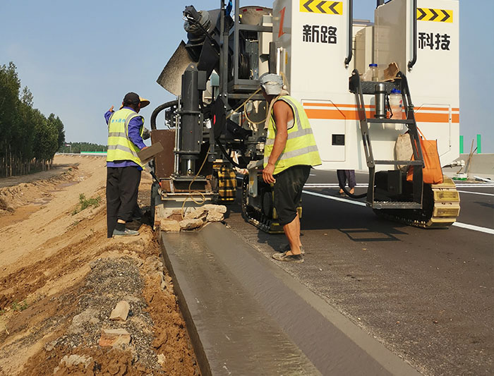 NC1300混凝土滑模攤鋪機(jī)在山西武鄉(xiāng)施工的排水溝